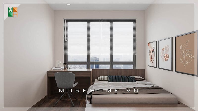 Để che đi bức tường trắng thô cứng của căn phòng bạn có thể sử dụng tranh treo tường. Tranh treo tường giúp không gian phòng ngủ trở nên ấn tượng và sang trọng hơn.