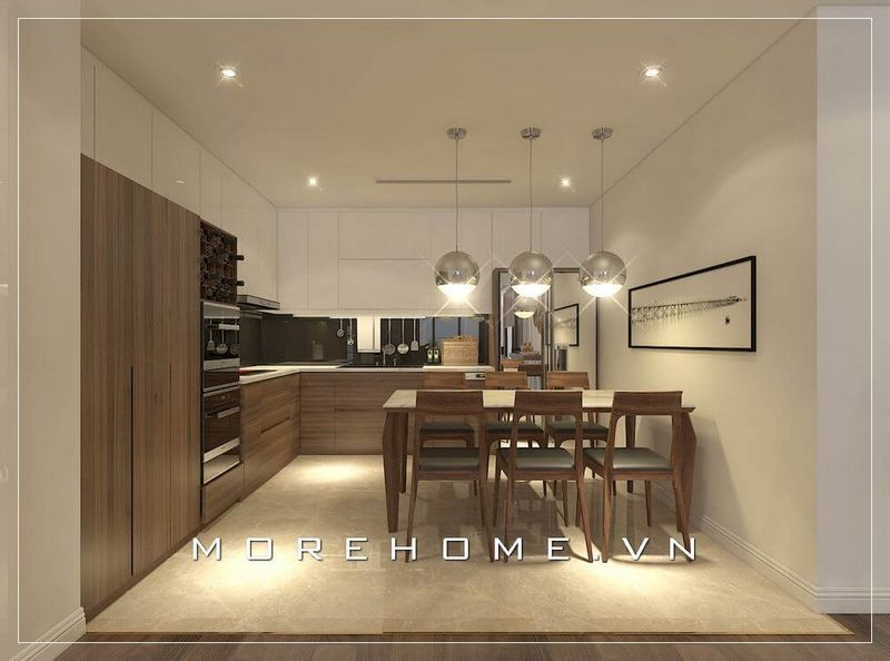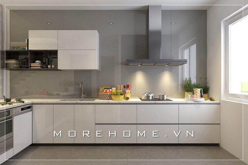Hệ tủ bếp chung cư hiện đại sử dụng gỗ công nghiệp An Cường được yêu thích tại MoreHome