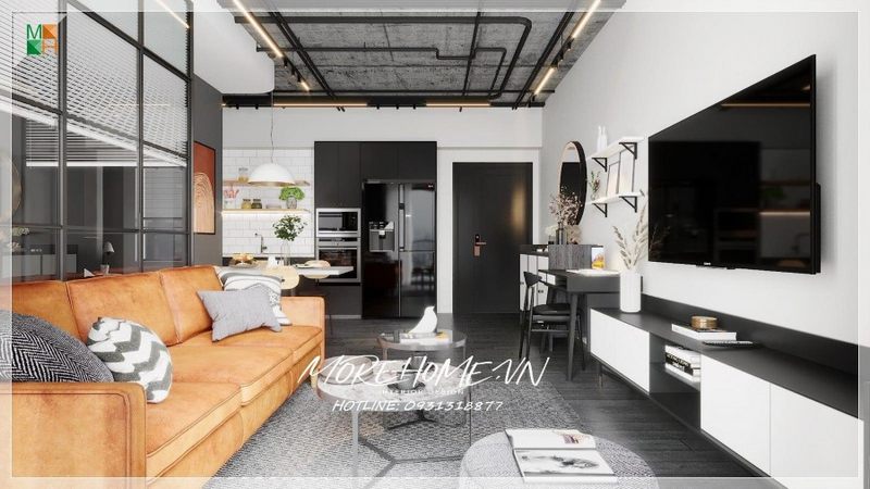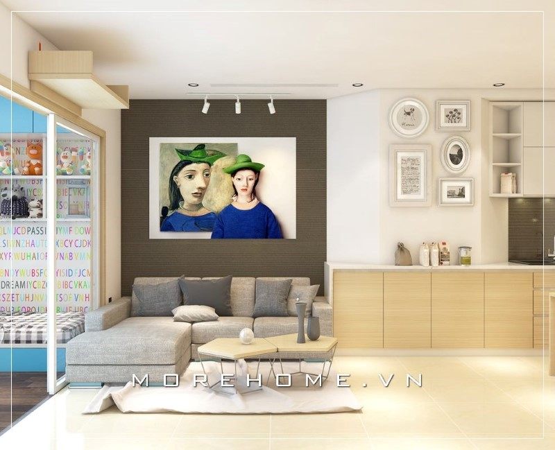 Màu xám của bộ ghế sofa kết hợp với tone nền của căn phòng góp phần tạo nên 1 không gian sống chất lượng.