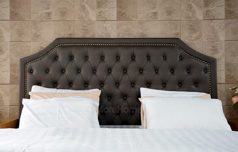 Đầu giường bọc da cao cấp với các nút trần tinh tế tạo độ căng bóng cho da