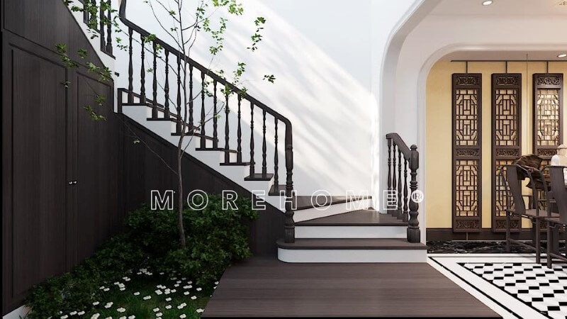 Trụ cầu thang được chạm khắc tỉ mỉ và tinh tế từ đó tôn lên được phong cách của gia chủ