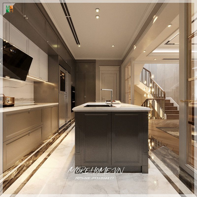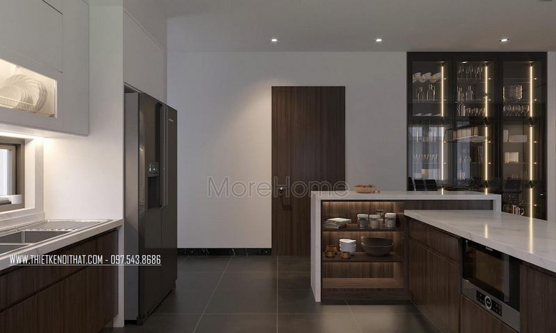 Thiết kế nội thất bếp biệt thự cao cấp, tiện nghi.