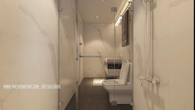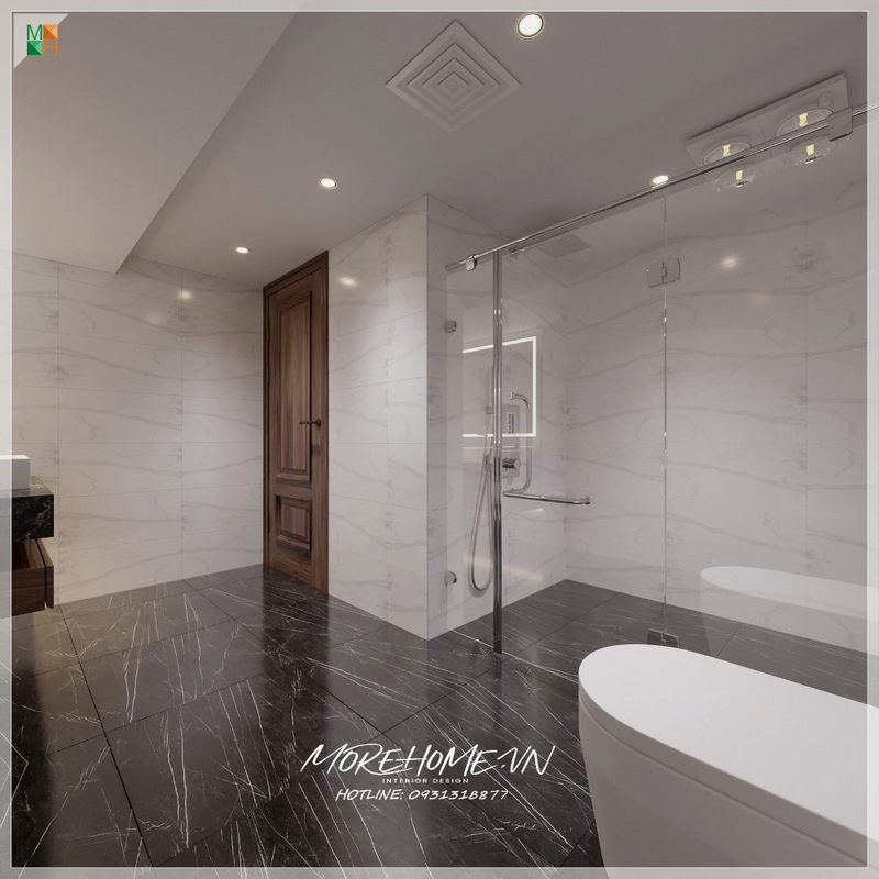 Vách tắm kính 180 độ bề mặt rộng rãi thoáng đãng ngăn giữa không gian phòng tắm đứng tránh văng nước gây ẩm ướt khó chịu tới khu vực khác
